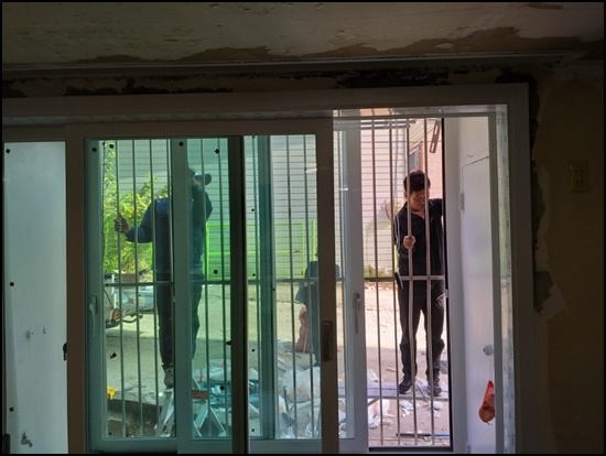 낡은 창호를 제거하고 창틀을 깨끗하게 이물질을 제거합니다